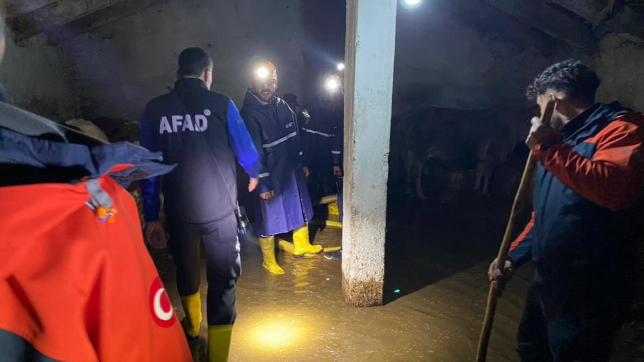 Olayın ardından 112 Acil Çağrı Merkezi'ne yapılan ihbar üzerine İl Afet ve Acil Durum Müdürlüğü (AFAD) ekipleri, olay yerine sevk edildi. AFAD İl Müdürü Özkan Aba'nın koordinasyonunda başlatılan çalışmalara çevre ilçelerden de destek ekipleri katıldı. Toplamda 15 araç ve 53 personelden oluşan ekipler, su tahliye çalışmalarına başladı. İş makineleriyle biriken sular tahliye edilirken, ev ve ahırlarda mahsur kalan vatandaşların güvenli alanlara geçişleri sağlandı.