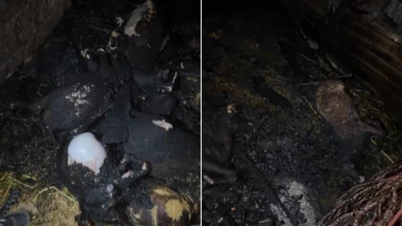 Ahırda bulunan 7 küçükbaş hayvanın yangın nedeniyle telef olduğu tespit edildi. Evde ise maddi hasar meydana geldi.