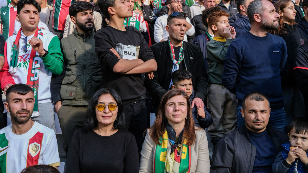 Karşılaşmayı, Serra Bucak ile Berivan Gülşen Sincar Doğu Tribünü’nde taraftarlarla birlikte izledi.