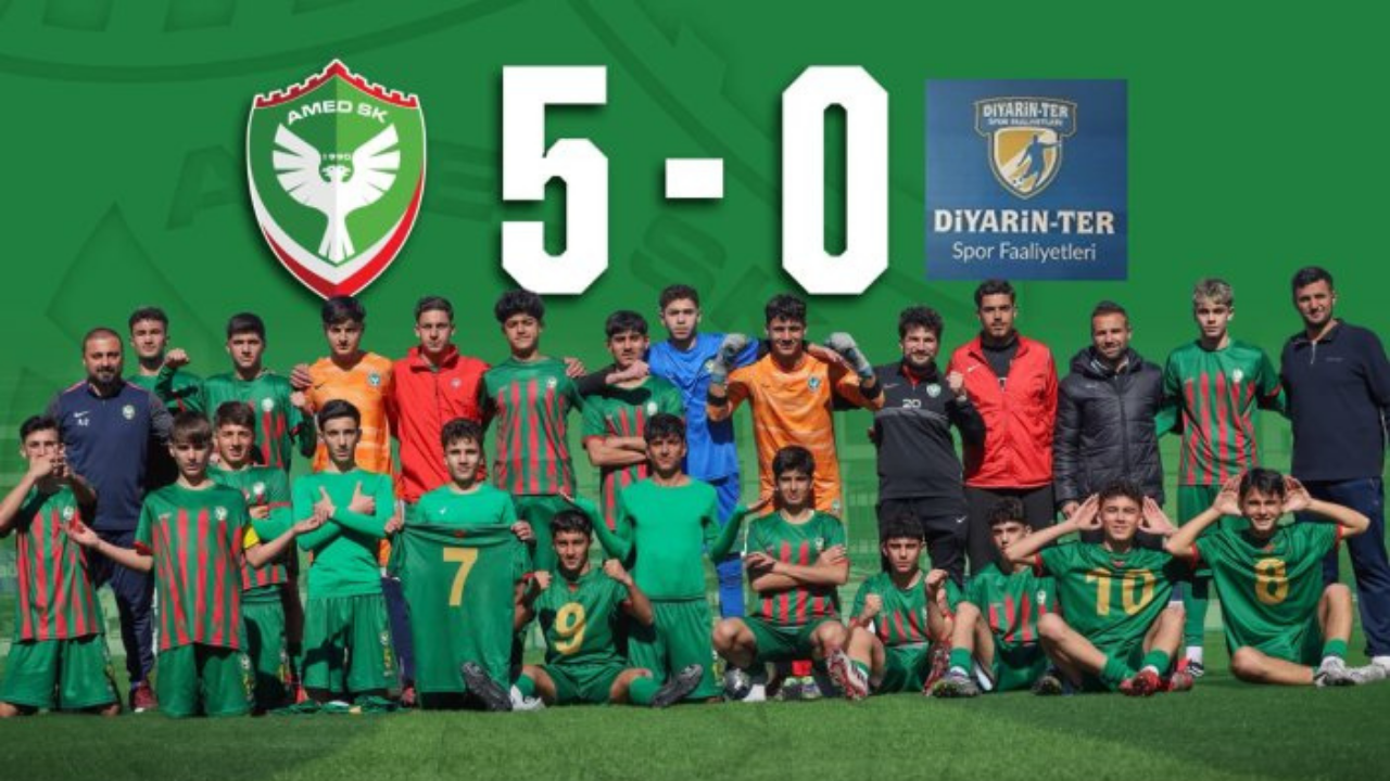 Akademi liginde sezon boyunca üstün bir performans ortaya koyan Amedspor U16, bugün oynanan karşılaşmada sahaya koyduğu disiplinli ve tempolu oyunla farkını bir kez daha gösterdi. Baştan sona kontrolü elinde tutan yeşil kırmızılı gençler, 5-0’lık net galibiyetle şampiyonluğu matematiksel olarak garantiledi.