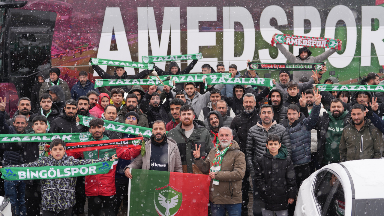 Yoğun kar yağışı ve sıfırın altına düşen hava sıcaklıklarına rağmen çok sayıda taraftar, yol güzergâhında toplanarak Amedspor’u selamladı. Meşaleler, bayraklar ve tezahüratlar eşliğinde yapılan karşılamalar, adeta tribün atmosferini yollara taşıdı.