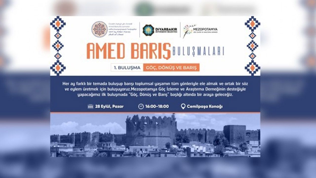 Diyarbakır Büyükşehir Belediyesi, 7 ay sürecek "Amed Barış Buluşmaları" düzenleyecek. Buluşmaların ilki 28 Eylül'de gerçekleşecek.