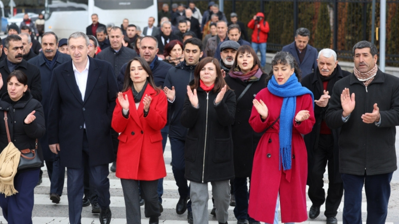 Halkların Eşitlik ve Demokrasi Partisi (DEM Parti), belediyelere kayyım atanmasına karşı Ankara Güvenpark'ta bir basın açıklaması gerçekleştirdi. Açıklamaya, Diyarbakır Büyükşehir Belediyesi Eş Başkanları Serra Bucak ve Doğan Hatun'un yanı sıra, DEM Parti Eş Genel Başkanları Tülay Hatimoğulları ve Tuncer Bakırhan, belediye eş başkanları ve meclis üyeleri katıldı.