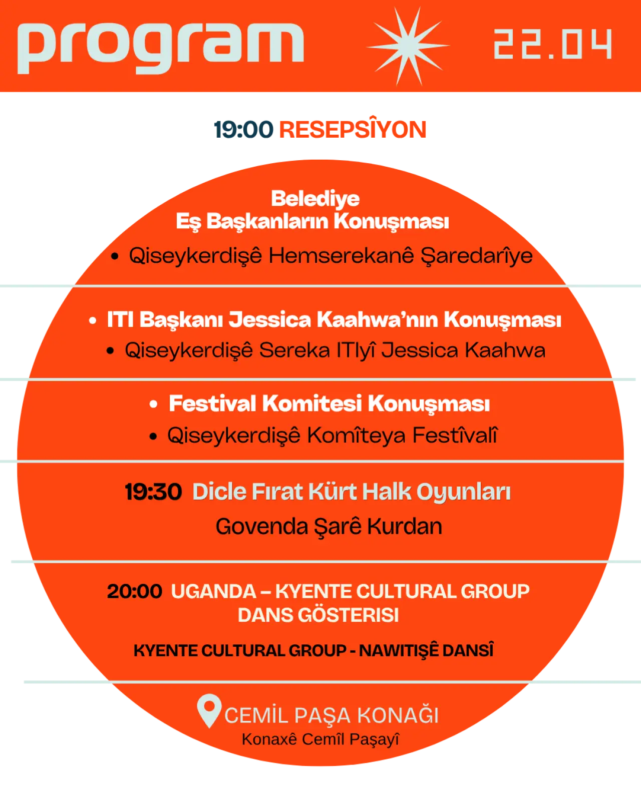 Festival kapsamında düzenlenecek oyunlar, atölyeler ve söyleşiler sanatseverlerle buluşacak. Etkinliklerin büyük bölümü Çand Amed Kültür ve Kongre Merkezi’nde gerçekleştirilecek.