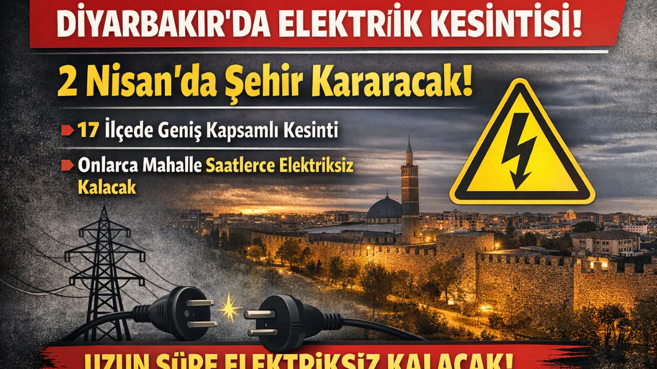 Diyarbakır’da 2 Nisan Perşembe günü birçok ilçe ve mahallede elektrik kesintisi yaşanacak. Dicle Elektrik tarafından yapılan planlamaya göre kesintiler bakım, onarım ve altyapı çalışmaları kapsamında gerçekleştirilecek.