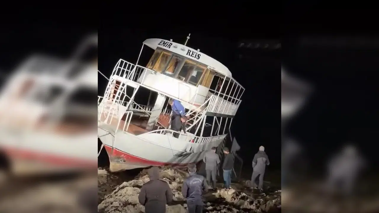 Diyarbakır Dicle Barajı’nda kısmen batan turistik tekne, jandarma ve belediye ekiplerinin müdahalesiyle halat yardımıyla karaya çıkarıldı.