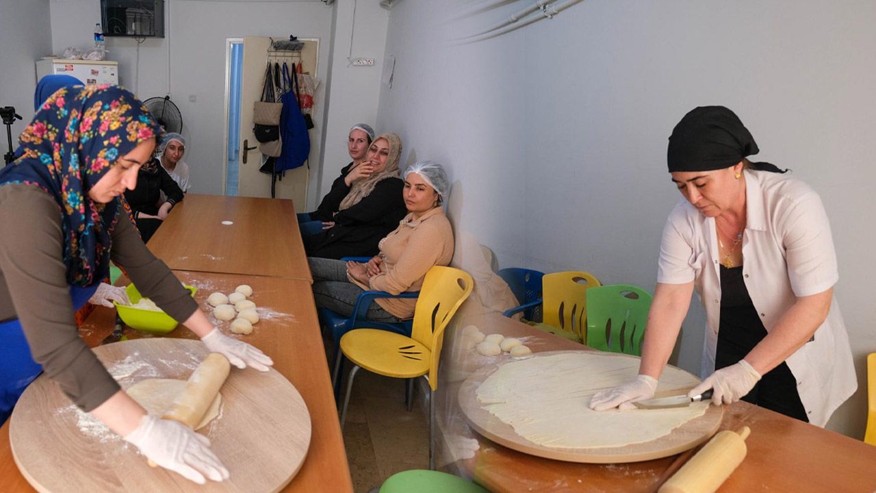 Kardelen Kadın Merkezi’nde geçtiğimiz yıl temmuz ayında başlatılan kurs, saha çalışmalarında kadınlardan gelen yoğun talep üzerine hayata geçirildi. Kurs, haftanın beş günü aktif olarak devam ediyor ve kadınlara hem teorik hem de pratik aşçılık eğitimi veriliyor.