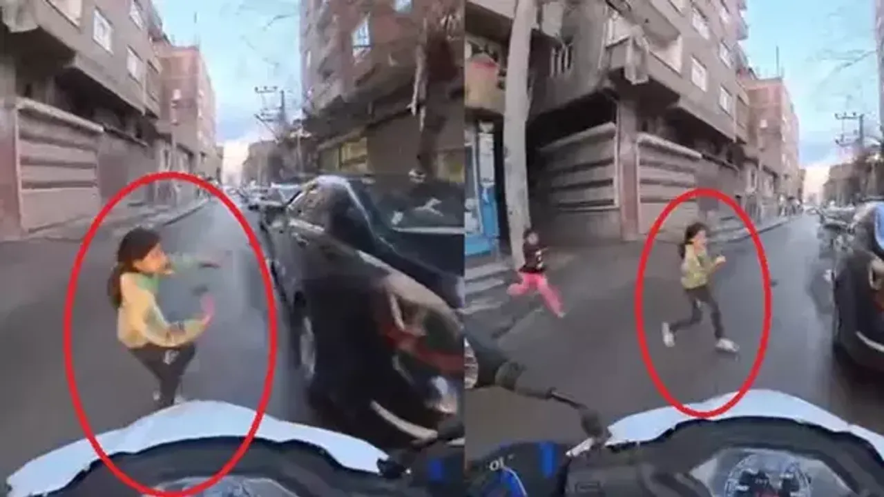 Dün öğle saatlerinde yaşanan olayda, küçük yaşlardaki bir kız çocuğu koşarak aniden yola çıktı. Bu sırada yoldan motosikletiyle geçen motokurye Danyal Eryılmaz, çocuğu fark ederek hızlı bir refleksle motosikletini durdurdu.