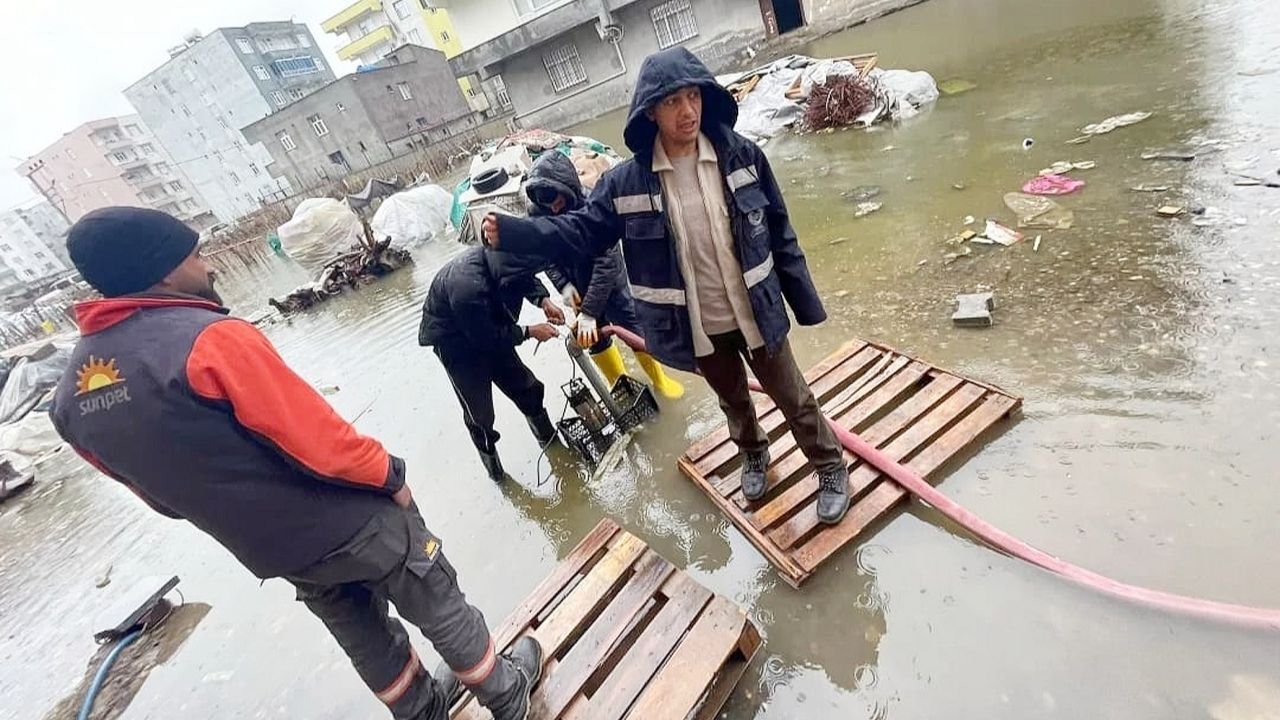 Diyarbakır'da yoğun yağış etkili oldu. Mahalleler sular altında kalırken, vatandaşlar yürüyecek yol bulmakta bile zorlandı. Yenişehir Belediyesi Makine İkmal Müdürlüğü'ne bağlı ekipler, Çelikevler Mahallesi'nde meydana gelen su birikintilerine karşı tahliye çalışması gerçekleştirdi.