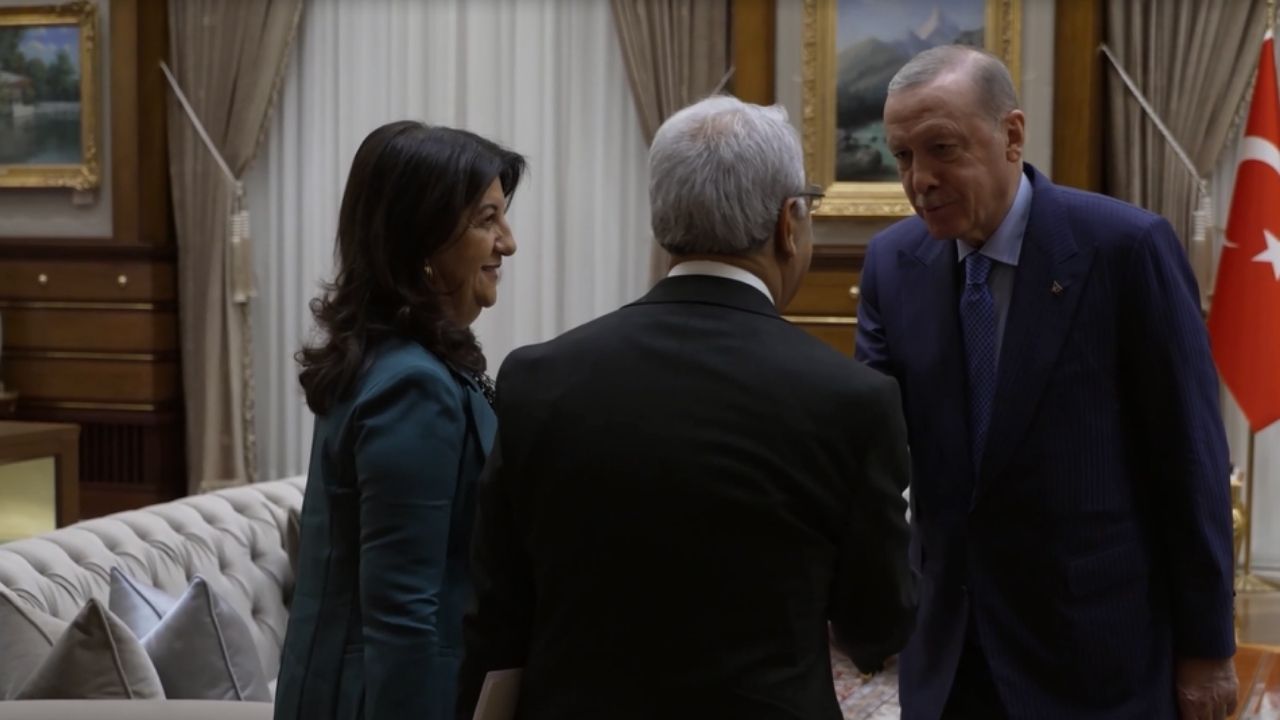 Cumhurbaşkanı Recep Tayyip Erdoğan, DEM Parti İmralı Heyeti’ni Cumhurbaşkanlığı Külliyesi’nde kabul etti. Basına kapalı gerçekleşen görüşmede TBMM Başkanvekili ve Van Milletvekili Pervin Buldan ile Şanlıurfa Milletvekili Mithat Sancar yer aldı. Kabulde ayrıca AK Parti Genel Başkanvekili Efkan Ala ve Milli İstihbarat Teşkilatı (MİT) Başkanı İbrahim Kalın da hazır bulundu.
