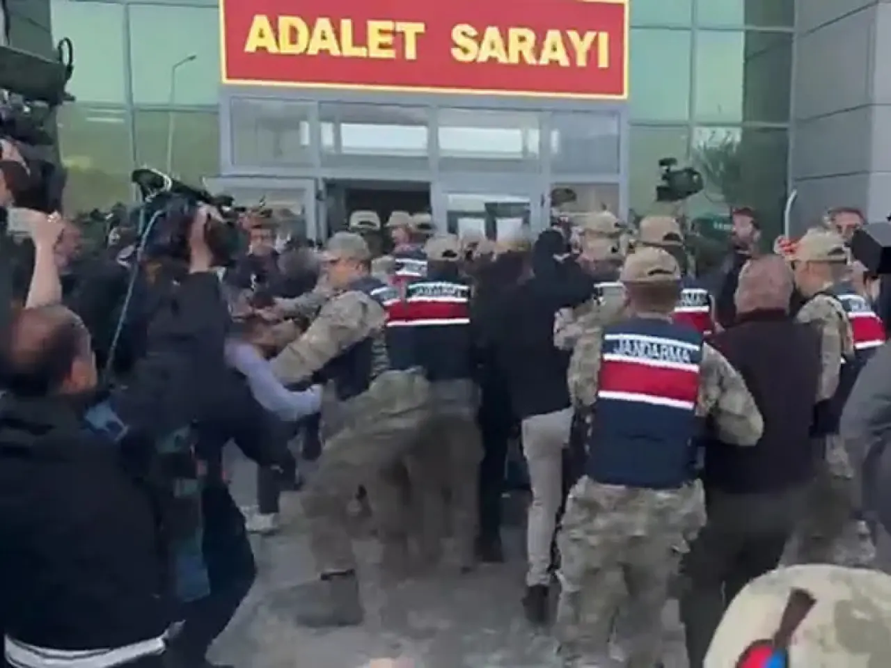 Adliye çıkışında jandarma eşliğinde araca bindirilen Sonel’e, Doku ailesi ve çevrede toplanan vatandaşlar tepki gösterdi.