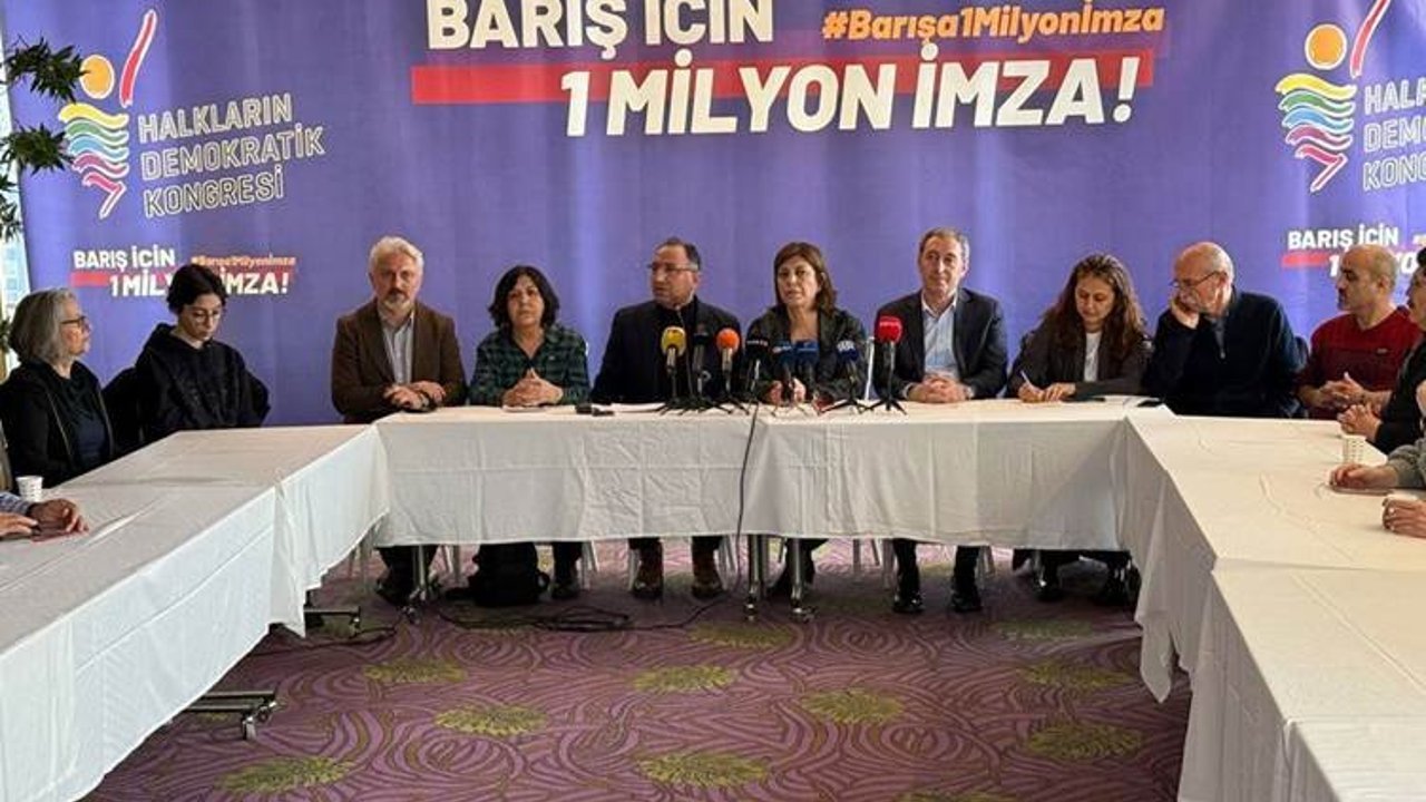 Halkların Demokratik Kongresi (HDK), Türkiye'de barış sürecine katkı sağlamak amacıyla 'Barış için 1 milyon imza' kampanyasının deklarasyonunu açıkladı. İstanbul Taksim'deki bir otelde düzenlenen toplantıya HDK Eş Sözcüleri Meral Danış Beştaş ve Ali Kenanoğlu, Halkların Eşitlik ve Demokrasi Partisi (DEM Parti) Eş Genel Başkanı Tuncer Bakırhan ile HDK bileşenlerinden çok sayıda temsilci katıldı.