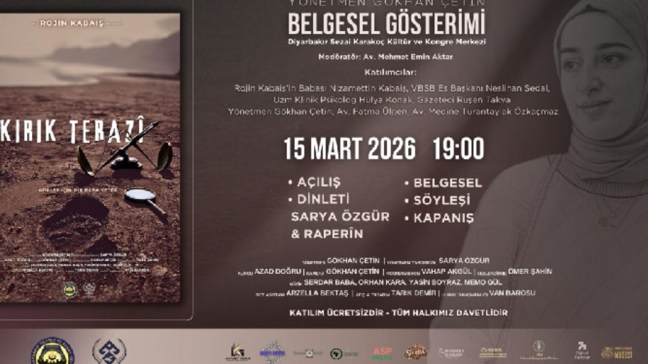 Bir baba, evladının ardından adalet için ayağa kalktı. Van'da hayatını kaybeden Rojin Kabaiş'in babası Nizamettin Kabaiş'in mücadelesi, sinemaya taşındı. "Kırık Terazi" adlı belgesel, bir babanın evladı için verdiği hukuk savaşını perdeye aktarıyor. Yapımın ilk gösterimi, Rojin'in doğum günü olan 15 Mart'ta Diyarbakır'da gerçekleşecek. Sanatçıların, yazarların ve hukukçuların bir araya geleceği gecede, kayıp çocukların sadece birer istatistik olmadığı mesajı verilecek. İşte etkinlikle ilgili tüm detaylar.