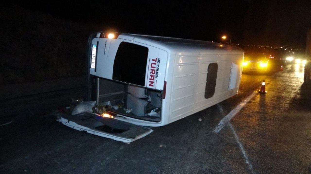 Adıyaman istikametine giden 28 AZ 683 plakalı hafif ticari araç, lastiğinin patlaması sonucu kontrolden çıkarak aynı yönde seyreden 02 AFS 117 plakalı Mercedes marka Adıyaman Turan Turizm firmasına ait midibüse çarptı. Çarpmanın şiddetiyle midibüs yan yattı.