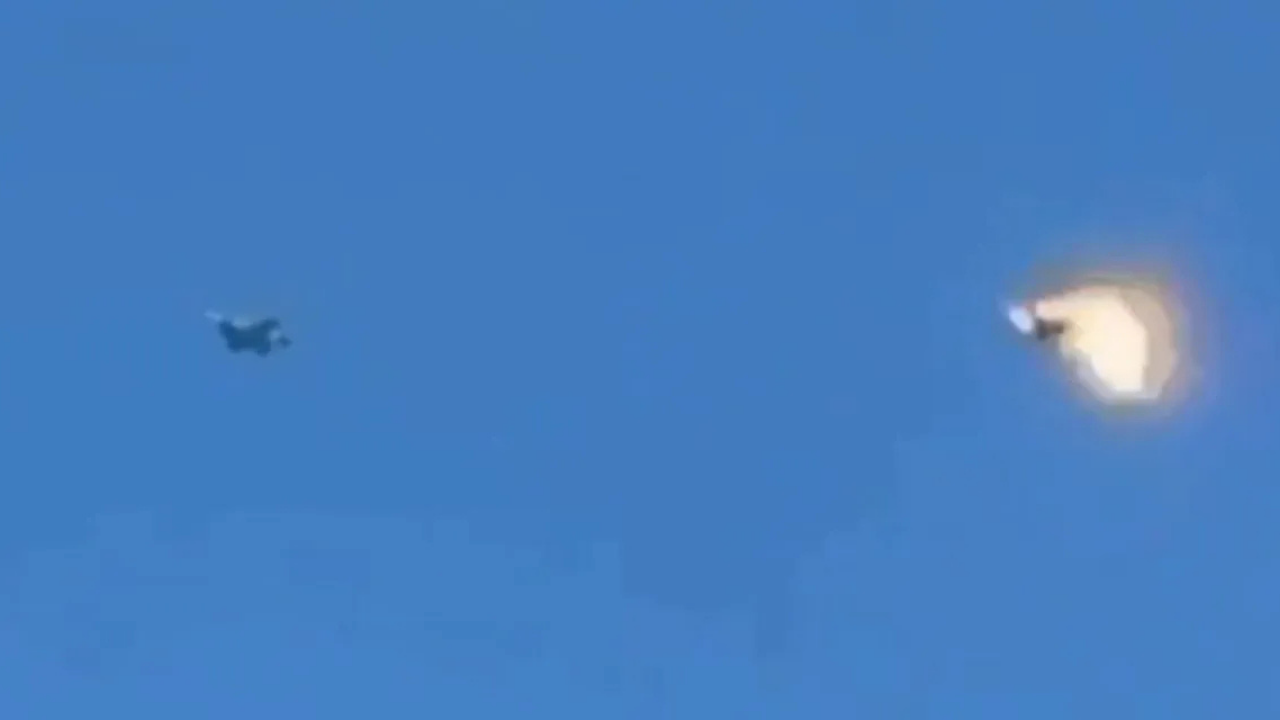 Sosyal medyada paylaşılan görüntülerde F-15 savaş jetinin kuyruk kısmına yakın bir noktadan isabet aldığı ve kısa süre içinde alev aldığı görülüyor. Kontrolünü kaybeden jetin havada takla atarak düştüğü anlar saniye saniye kaydedildi.